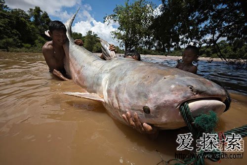 8、湄公河流域捕获世界上最大的鲶鱼 重达646磅(293公斤)、体长9英尺(2.7米)